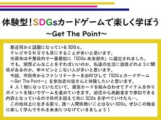 「SDZSカードゲーム~Get The Point~」を体験してみましょう。市原市からファシリテーターをお呼びして、開催いたします。