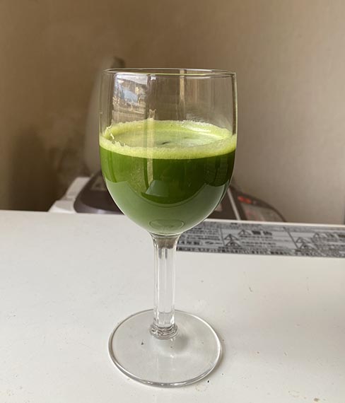 加茂菜のジュース(右)