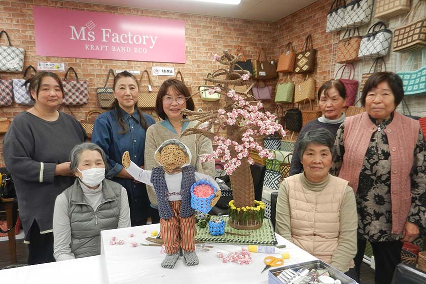 コロナ禍の売上不振では、PPバンドが打開策となった。梱包用のプラスチックのPPバンドが、クラフトバンドと同じ1.5㎝幅だったのだ。「クラフトバンドは紙なので洗えませんが、PPバンドは除菌できる。濡れた物も入れられるのでエコバッグとしても重宝される。丈夫で、材料費も3分の1。センスのいいPPバンドばかり買い集めて、必死で作品を考え、1カ月で本を作って、講師の先生たちにも練習しようと声を掛けました」と、松田さんは振り返る。起業から24年、同社の年商は7億円を超え、協会認定の講師は全国で8000人にのぼる。