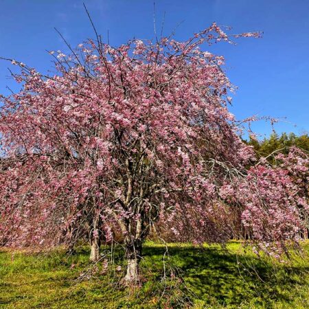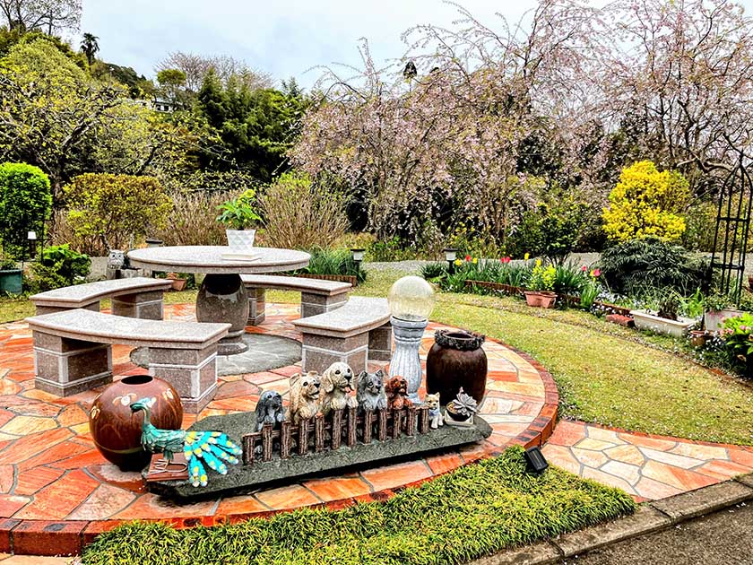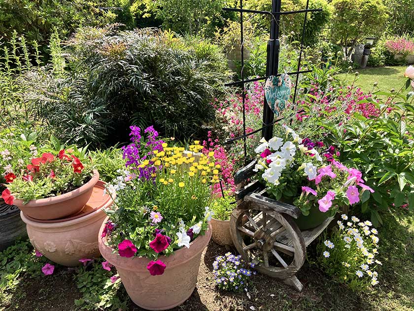 CITYLIFE 地域情報紙シティライフ うららかに春の悦び 川が流れる山あいのオープンガーデン~癒しの齋藤ガーデン~【大多喜町】 2026.04.02 大多喜町小苗の齋藤博さん邸では、庭を『癒しの齋藤ガーデン』と名付け、4月初めのシダレザクラから、八重桜、ツツジへと花の盛りが移っていく4月末までの間、オープンガーデンを行う。齋藤博さんは郵便局退職後、自宅庭の整備を始め、八重桜が見事な花を咲かせることから、「自分たちだけではもったいない」と、一般に公開するようになった。今年16回目となるオープンガーデンは、シダレザクラの開花とともにスタートする。 力を合わせて庭作り 齋藤邸の地所は3500坪。自宅裏には竹林、南側斜面を下りれば、いすみ川支流の西畑川が敷地内を流れている。ここは博さんの生家で、両親は米農家を営んでいた。「子どもの頃は、兄弟で農作業を手伝っていました。川ではウナギをとってよく食べたものです」 博さんが敷地の整備を始めたのは、郵便局を退職した20年程前のこと。今でこそ南に面した庭は日当たりが良く、向かいの山まで視界が開けているが、当時は母屋の前に2階建ての納屋があり、川が流れる谷の周辺は杉が植えられ、こんもりとした森になっていた。「日陰で暗かったし、葉っぱも飛んできた」というほど。その後、1年1年手をかけて庭を造り上げてきた。森を伐採し、納屋を西側に移設。お稲荷様には建屋と鳥居を新築し、「きれいな花で神様が喜んでくれると思って」と、周りにぎっしりとツツジを植えた。公開を始めるきっかけとなった3本の八重桜は、当時樹齢30年ほどの木だったが、それに加え新たに70本の苗木を植えた。シダレザクラ、アジサイにムクゲなど、季節ごとに花を楽しめる木や、青葉や紅葉がきれいなモミジも植えていった。 齋藤さん夫妻 「初めは全くの素人で、見よう見まねでやりながら覚えました。ツツジも最初バサバサと刈っていたら、あまり咲かなかったこともある。刈る時期が悪かったんだなと。庭全体の美しさ、手前を低く、後ろを高くというスケール感を初めは分からずにやっていたので、一度植えた木を植えかえたりもしました」と博さんは説明する。庭の手入れの「三種の神器は、植木ばさみ、鎌、ノコギリ」で、エンジン式の草刈り機や電動の植木バリカンは使用しないという。「こんなに広いところを本当に一人で?」ときかれることもよくあるとか。「私は、アート部門担当」と話すのは、妻の洋子さん。木工で看板や動物を作ったり、雑貨でプランターや鉢を飾り付けたりと、植え込みや庭の所々を色とりどりの草花とともに演出する。「切った枝がキリンに見えたら、キリンの柄をペイントしたりして。ネットの動画も参考に楽しんでいます。草花は品種によって日なたがいいとか、半日陰がいいとか、長年かけて失敗を繰り返しながらやってきました」 2019年に相次いで房総半島を襲った台風では、八重桜が20本、根元から倒れてしまったり、西畑川が氾濫し、谷の周辺は流れてきた倒木やゴミの始末が大変だったりと、ガーデンにも被害があった。最近ではキョンが出没し、やわらかい若木がかじられ枯れてしまうので、割った竹で筒状に幹を覆うなどの苦心をしている。それでも、「庭を見てくれる人がいるので張り合いになる。おかげで病院知らず、薬知らずです」と、博さんは笑う。 心と体の元気の源 ガーデンは四季折々の自然の恵みにあふれている。フキノトウやゼンマイ。大多喜名産のタケノコ。果実は、ウメ、イチジク、ブルーベリー、柿に柚子。大きな夫婦イチョウからはギンナンも。山あいのこの土地は肥沃で、「すべてが美味しい」。「梅がならない年によそでウメを買ってみたら、家のウメがやはり美味しいと思いました」と、洋子さん。「果実はジュースにしたり、ジャムにしたりと、作って楽しい、食べて美味しい、です」と顔をほころばせる。 4月の齋藤ガーデンは、シダレザクラが薄紅色の花をつけ、同じ頃シャクナゲや春咲きのツバキも咲き揃う。中旬にはシダレザクラからバトンを受けるように、八重桜が濃いピンクの花を咲かせる。下旬になると平戸ツツジが赤や白にピンク、ヤマツツジがオレンジ色の花を競うように咲かせる。博さんは、「ここにきて、庭は一通り完成したかな」と感じている。「これからは、いつまでも元気に、手直ししながら管理していければ」と、洋子さんとうなずき合う。「オープンガーデンで交流が広がって、いろいろな方とつながりができました。お客さんにいろいろなお話がきけるのが楽しみ。決まって来てくださるリピーターさんもいらっしゃいます」。町内の保育園生と小学生の訪問も毎年の恒例となった。子どもたちは、花を見て喚声を上げたり、竹林の中を走り回ったり。「みんなかわいくて、私たちが元気をもらっています」とふたり声を合わせる。 この春も『癒しの齋藤ガーデン』は、様々な出会いを心待ちにしている。シダレザク