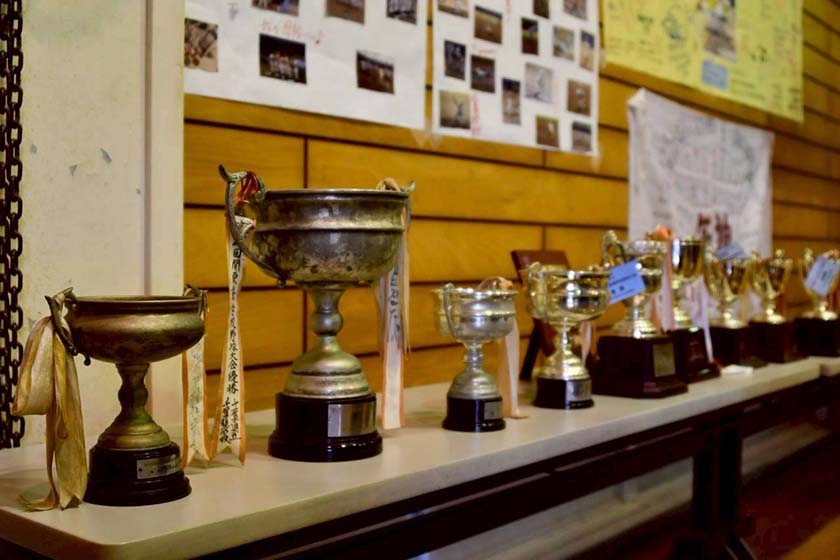 閉部式が行われた同校体育館には、生徒、職員を含め、OB・OGや保護者、関係者ら150名ほどが集った。歴代の優勝カップや寄せ書き、写真などが並べられた一角では、来場者の思い出話に花が咲いていた。OBの榊原敏博さんは、昭和42年第16回関東聾大会で初優勝を果たしたメンバー。リボンの色があせた当時の優勝カップを手に、記念撮影をしていた。「なつかしく、いろいろなことを思い出しています」。榊原さんにカメラを向けるのは、平成6年卒業の山中正和さん。長男の彪太郎さんは野球部最後のメンバーの一人で、親子して関東聾の優勝経験がある。「本当にさみしい」と悔しさをにじませた。
