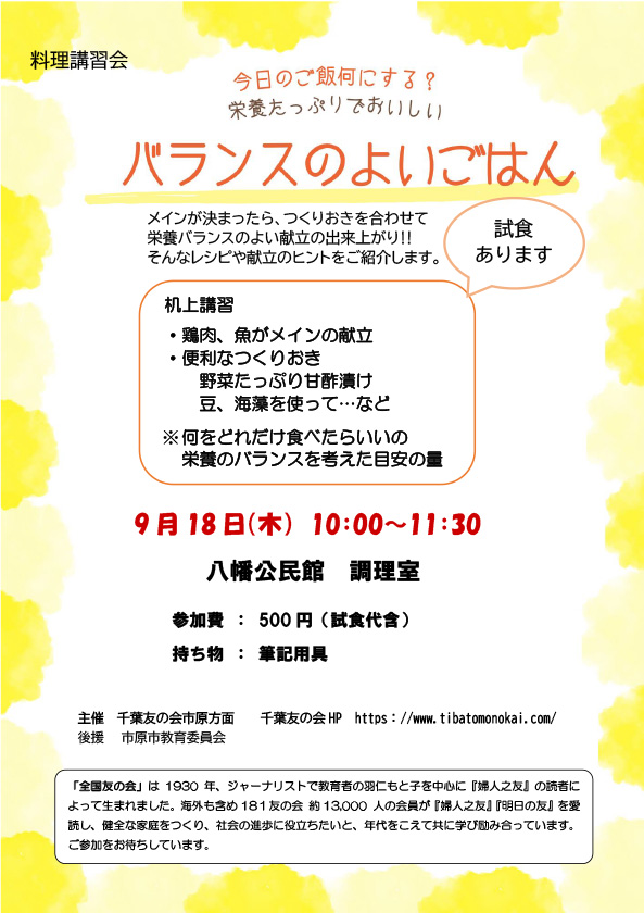 料理講習会「バランスのよいごはん」
