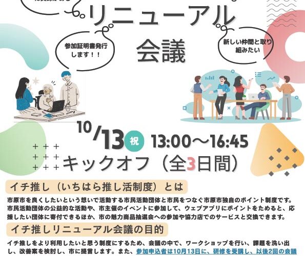 イチ推しリニューアル会議【若者対象】 10/13・10/18・11/23の全3回
