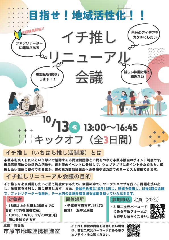 ・イチ推しリニューアル会議【若者対象】 10/13・10/18・11/23の全3回