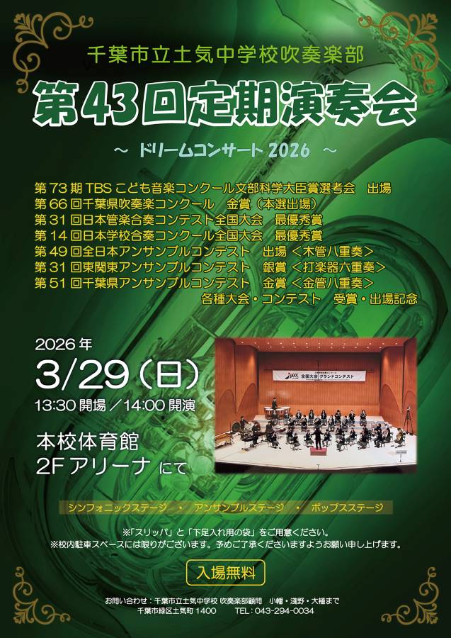 ・千葉市立土気中学校吹奏楽部 第43回定期演奏会 3/29