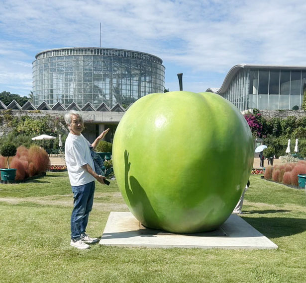 前庭には大きなリンゴのオブジェがあり、その周囲にはさまざまな花木が植えられていて、まるでオアシスのようです。