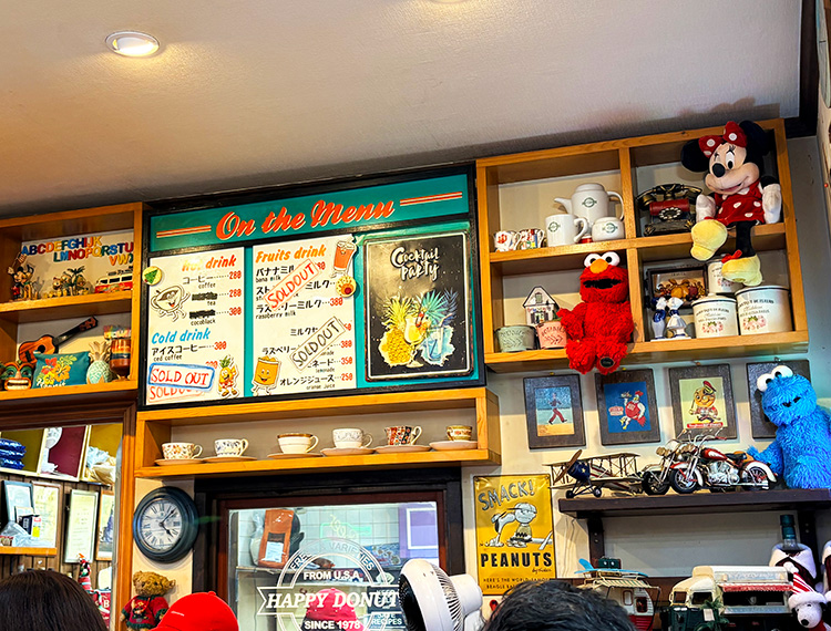 アメリカンな雰囲気の店内には、可愛らしい人形が飾られていて、見ているだけでも楽しくなります。